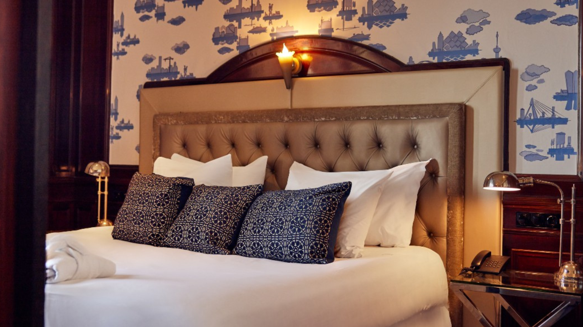 De WOW Suite kijkt uit over de Maas en is de grootste nostalgische hotelkamer van Hotel New York. De houten lambriseringen en authentieke open haard herinneren aan de bewogen tijd van de Holland Amerika Lijn. Door de moderne inrichting, televisie en Delfts blauwe inrichting is de kamer een prachtige mix van toen en nu. Over de gehele lengte van de kamer heb je ramen waardoor het uitzicht over de Maas geweldig is! De hoge stoel met verrekijker maakt de kamer helemaal af.