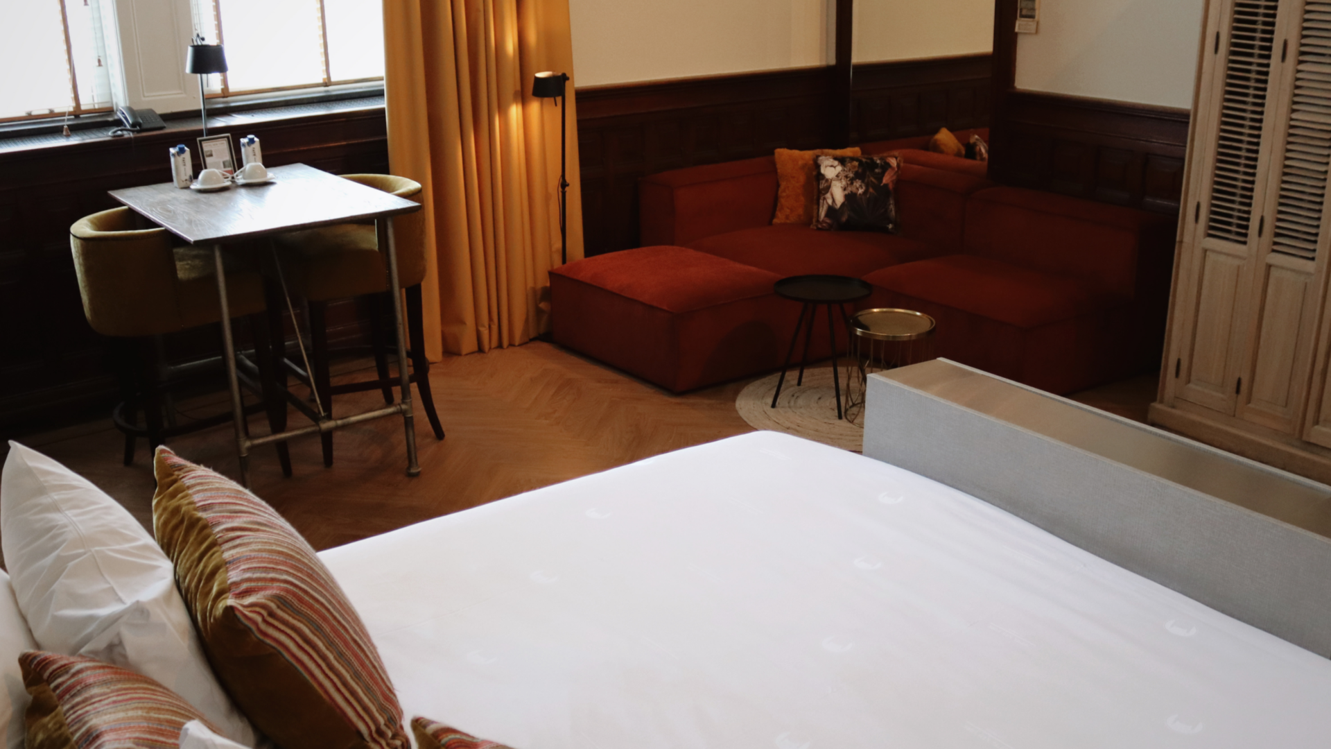 Maaszijde Deluxe kamers van Hotel New York zijn allemaal verschillend qua vorm en indeling. De foto’s op onze website geven een indruk van de sfeer en inrichting van één van onze Maaszijde Deluxe kamers.